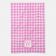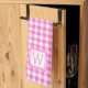 This cute farmhouse inspired monogrammed kitchen dish towel features a cute pink and white gingham plaid pattern. personalise the monogram with your choice of initial. Makes a cute gift for a dorm room or first apartment.