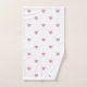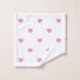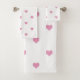 Pink and white heart-patterned towel set.