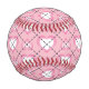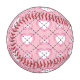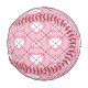 This baseball features a pattern of white and pink argyle hearts on a pink background.