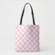 Pink and White Large Size Diagonal Gingham Checks Tote Bag