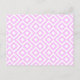 This stylish pink and white geometric pattern is an original ornamental design. White meanders angle around bubblegum pink diamonds containing white diamonds. Pink zigzags provide subtle separation between the winding paths.