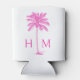Pink and White Palm Palmetto Tree Monogram Can Cooler