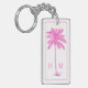 Pink and White Palm Palmetto Tree Monogram Key Ring
