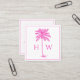 Pink and White Palm Palmetto Tree Monogram Square Business Card