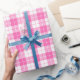 A wrapping paper designed with a pink and white plaid pattern. Customise the white background among other options.