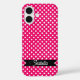 Pink and White Polka dots iPhone 16 Case you can customise or personalise it by adding a text or your name.