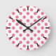Pink and white polka dots round clock