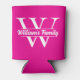 Keep your drinks cool and stylish with our Pink and White | Simple Family Name Monogram Can Cooler. This functional accessory features a soft pink and crisp white colour scheme and a personalised family name monogram, making it the perfect addition to any outdoor gathering or picnic.