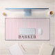 Modern minimal typography girly pink and white stripe elegant simple unique personalised gift desk mat design.