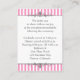 This pink and white striped reception enclosure card has pretty silver scroll accents and matches the wedding invitation shown below. You can also customise it to be a map or directions card, a wedding information card, or gift registry card by changing the text accordingly. If there are any other matching items you require, please email your request to niteowlstudio@gmail.com.