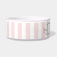 This per bowl has a background of pink and white stripes. There is a banner with a place for you to personalise with your pet's name. The perfect compliment to your Parisian or shabby chic decor.
