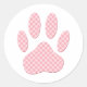Pink And White Tartan Dog Paw Print Classic Round Sticker
