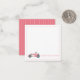 This cute note card features a vintage toy car in warm shades of pink and white with matching pink and white stripes on the back. Personalise with your choice of name or special text.