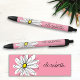 Pink and White Whimsical Daisy with Custom Text Black Ink Pen