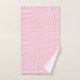 Fun bath towel set, with the bath towel done in white with cute little bunnies all over. The hand towel is done in a pink and white polka dots and the wash cloth is a white and pink quatrefoil pattern, with one large cute rabbit. Sweet towel set for any young girl's bathroom.