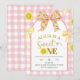 Pink and Yellow Bow Sweet One Lemon Birthday Invit Invitation
