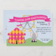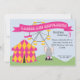 Ladies and gentlemen, step right up to a fun carnival birthday party! Setting the stage are traditional circus sites in bright yellow and pink, including a tent, unicycle, performing elephant on a platform, and a ferris wheel. Customise this birthday party invitation to your event and have a blast!