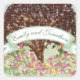 Pink Green and Yellow Floral Brown Oak Tree Vintage Retro Banner with Bride and Groom's names Wedding Seal