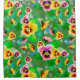 Pink and yellow flowers, green leaves over green background