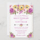 Gorgeous Watercolor Pink and Yellow Summer Flowers floral Wreath frame design with gold glitter confetti and stripes pattern background