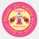 Pink and Yellow Whimsical Gumball Party Sticker. Great for Candy buffets or cupcake tables at weddings, birthday parties, Baby showers, Communion, Confirmations and lots more! Design features a gumball machine filled with colourful candy, a chocolate wrapped candy on either side against a lemon yellow background. Behind this is a larger pink circle with Matching yellow text with the phrase "Thanks for making my party so Sweet!". The child's name and Sweet Shop text is place around the gum ball machine. You can change this text under the 'Customise' Menu. If you would like a custom designed sticker, click 'Contact' above and fill in your requirements.