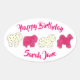 Pink Animal Crackers Cookies Circus Birthday Party Oval Sticker
