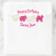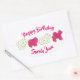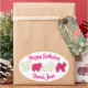 Stickers feature an original marker illustration of a row of pink and white circus animal crackers, with HAPPY BIRTHDAY in a fun pink font.