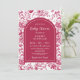 This beautiful and elegant baby shower invitation features an antique pink Chinoiserie pattern. The text combines handwritten script and serif fonts for a stylish and modern look. This is perfect for a spring or summer garden baby shower.