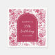 This beautiful and elegant birthday party napkin features an antique pink Chinoiserie pattern. The text combines handwritten script and serif fonts for a stylish and modern look. This is perfect for a spring or summer garden birthday party.