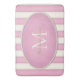 Pink & Antique White Stripes Oval Framed Monogram Bath Mat
