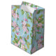 Pink Apple Blossom on Sky Blue Leaves Medium Gift Bag