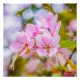 Macro view of a bunch of pink apple flowers. Apple tree in full bloom. Blurred background makes the impression of soft wind and play of light and shadows. You can even hear a palpitation of the leaves. Spring motive in pink colour. Textured photography.