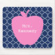 A gift for teachers featuring an illustration of a pink apple over a navy blue quatrefoil background. Personalise with your name on apple.