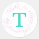 Pink, Aqua Monogram T Thank You Sticker. Great for weddings, baptisms, and other important family celebrations. For different colours and monogram please contact luxuryweddinginvitations@gmail.com