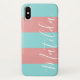 Pink Aqua Stripe Personalised Name Case-Mate iPhone Case