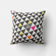 Pink Aqua Yellow Grey Abstract Triangle Pattern Cushion