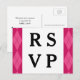 Classic and elegant Argyle Wedding RSVP Postcard with a simple pink diamond argyle pattern background. Easy to customise with your wedding details. For more customisation options, click on the Customise It button.