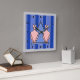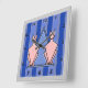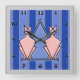Pink Art Deco Cats on Blue Striped Background Square Wall Clock