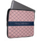 Pink Art Deco Pattern with Navy Name Stripe Laptop Sleeve