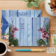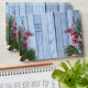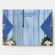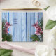Blue vintage wood textured creative arty design with pink graphic flower decor for a guest or a beach cottage to hold a wedding. This collection comes with a matching guest book for wedding guests or holiday visitors to sign