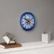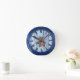 Pink Arty Flowers on Blue-wood texture Round Clock
