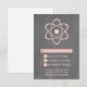 Cute and nerdy Atomic Chalkboard Wedding Response Card featuring a simple atomic symbol in light pink on a chalkboard look background. This geeky and fun wedding RSVP card is perfect for the science enthusiast couple! Easy to customise, simply add the details of your wedding in the spaces provided. Click "Customise It" to find more personalisation options.
