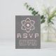 Cute and nerdy Atomic Chalkboard Wedding Response Card featuring a simple atomic symbol in light pink on a chalkboard look background. This geeky and fun wedding RSVP postcard is perfect for the science enthusiast couple! Easy to customise, simply add the details of your wedding in the spaces provided. Click "Customise It" to find more personalisation options.