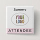 Pink Attendee Name Badge with Logo Pinback Square
