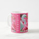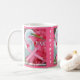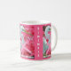 October is Breast Cancer Awareness Month, but this important subject can be remembered all year long with this Mug by ZoeSPEAK. The original design shows a white bird, a great egret, in front of pink flowers, hydrangeas. The bird has a long yellow beak and a neck curved like the letter S. The egret is wearing a pink ribbon around her neck, a reminder of the importance of breast cancer awareness. The design is repeated around the mug over a pink background. In between the photos is text which says REMEMBER, but this can be changed or deleted to suit your needs.
