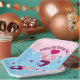 Delight your guests with this charming paper party plate featuring a pink axolotl surrounded by love hearts. Personalise it with the celebrant’s name and age for a unique touch. Perfect for birthdays, baby showers, or any joyful gathering.