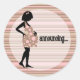 This sticker coordinates with announcements, baby shower invitations & postage stamps found in my shoppe. The design is a pregnant silhouette with mum's hand on her baby belly. She is wearing a pink dotted dress and is on a pink & brown striped background. Perfect for adding that final touch by sealing the envelope.