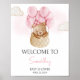 Pink Baby Bear Hot Air Balloon Baby Shower Welcome Poster