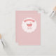 A charming baby shower thank you notecard in shades of pink and white. It features a scalloped medallion in the centre with a carriage and a ribbon which reads "Thank You".