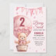 Pink Baby Girl Air Ballon Teddy Bear Birthday Invitation